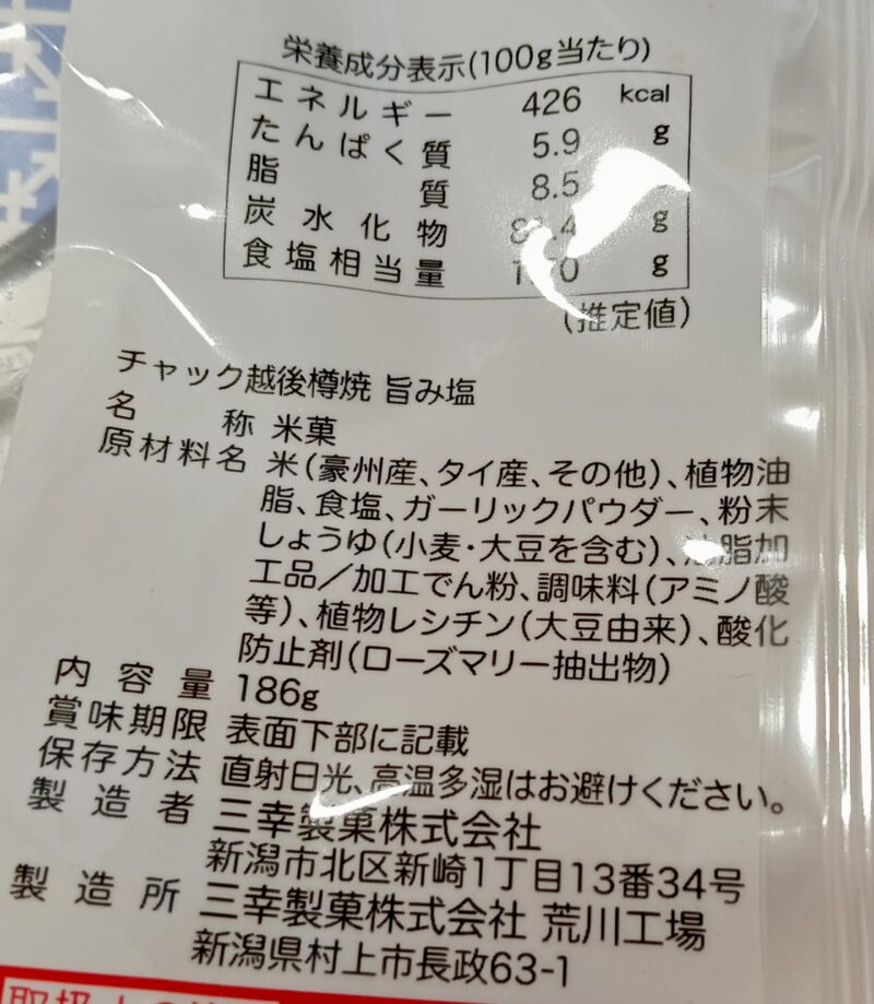 town神奈川県横浜市綱島food食べ物お菓子煎餅 三幸製菓越後樽焼旨み塩綱島アピタ ガーリックの香りがそそる煎餅があった Oplus_131072 2026.01.15 三幸製菓さんの本格固焼き 越後樽焼 旨み塩 。168gで198円、お買い得なお値段でした。お米は豪州産とタイ産。お米を味わうお煎餅というよりは、ガーリックとお醤油のスナックというカンジでした。 Oplus_131072 Oplus_131072 Oplus_131072 お米本来の叔父を楽しむお煎餅ではないけれど、バランスの良いスナックです。堅めお煎餅好きな方へおすすめします。 Post Views: 11