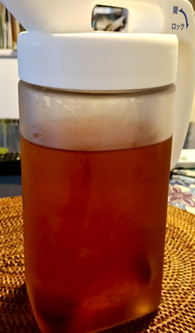家で水出しアイスティーを作って飲んでいます。お気に入りはルイボスとアーモンドのブレンド。