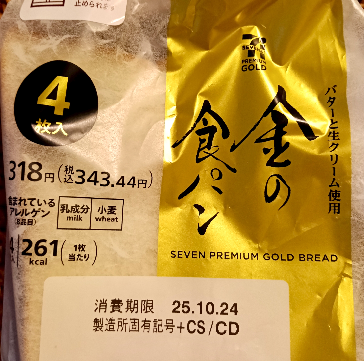 食パンの在庫が切れまして、奥さんが買ってきました。近所のパン屋さんがお休みとのことでこちらになったそうです。初体験。金シリーズ。