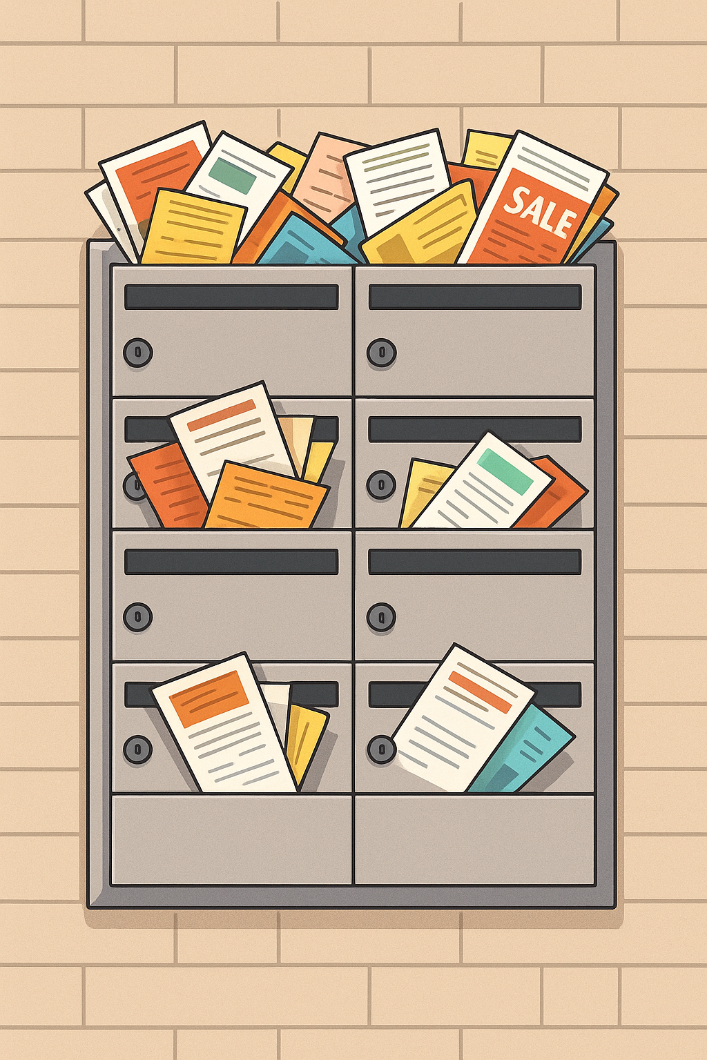 何人もの人が入れていかれるので、たまにチラシがすでにクシャ、クシャになっています。これでは残念ながら見る気が失せます。