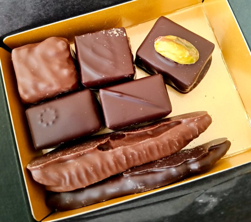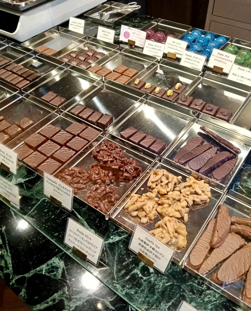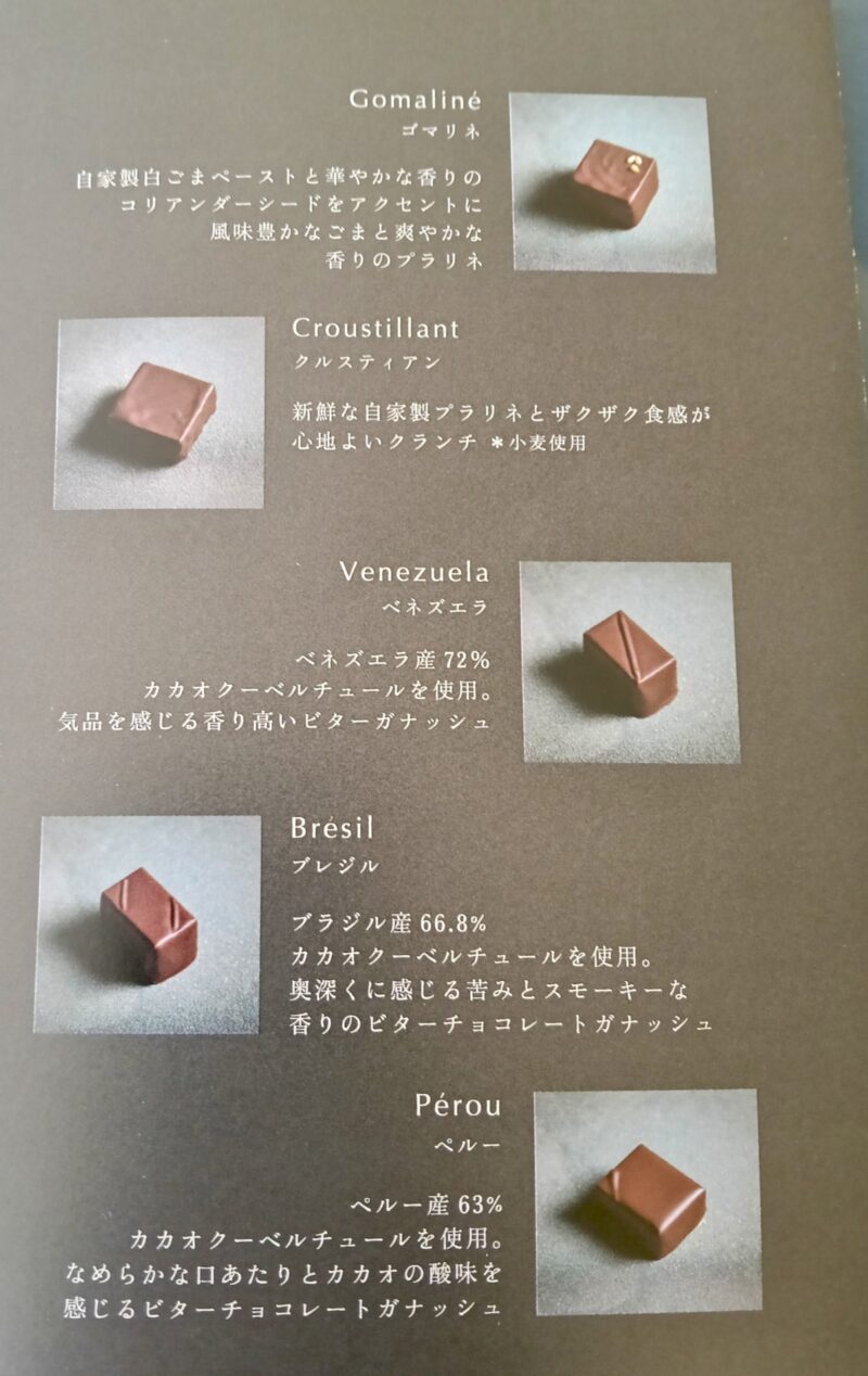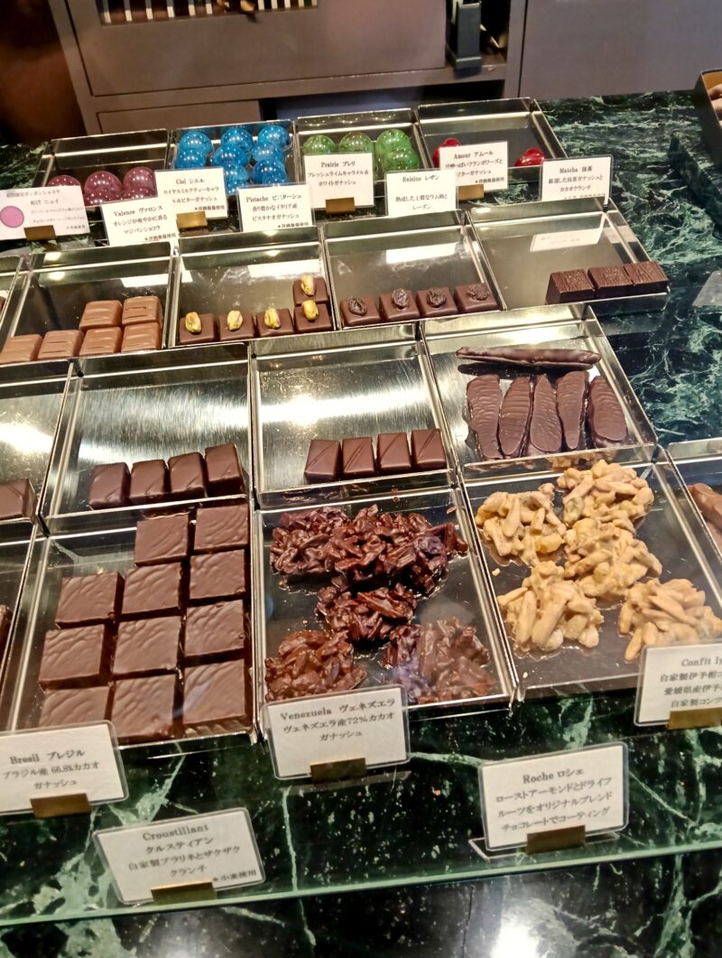 繊細さを感じさせるチョコレートは量り売りがメイン。g50円ということでスタッフの方に聞きながらおすすめを6つチョイス。1つおまけで7つで58g3132円でした。