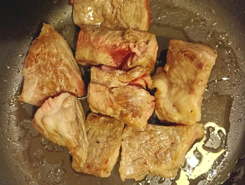 国産牛はアブラが違う。なんでだろう? 牛の生育地域なのかな。よく動いている?餌がいいのかな?