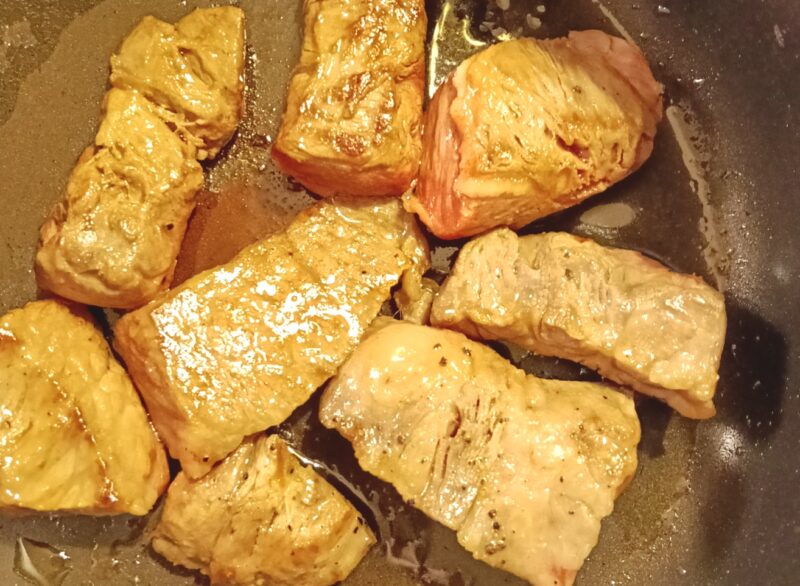 塩と胡椒をしてじっくりと弱火で焼きます。