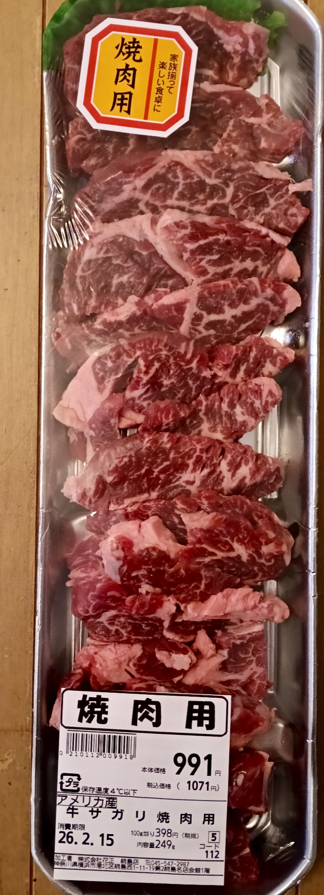 綱島のハナマサにて。249g1071円でした。本日売り場で一番美味しそうでしたのでこれをチョイスです。