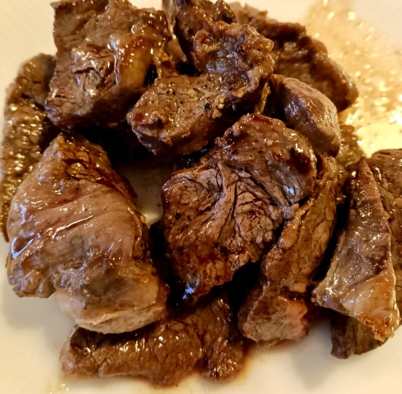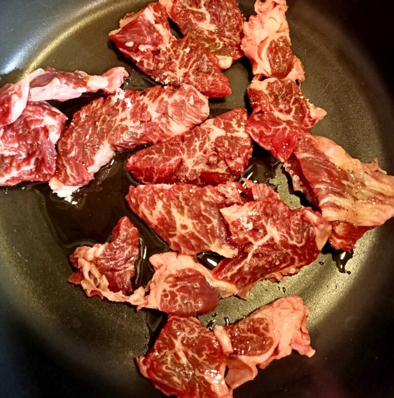 フライパンを覗きつつ焼き色がついている。溢れる肉汁を見て、我慢できずにいただきました。