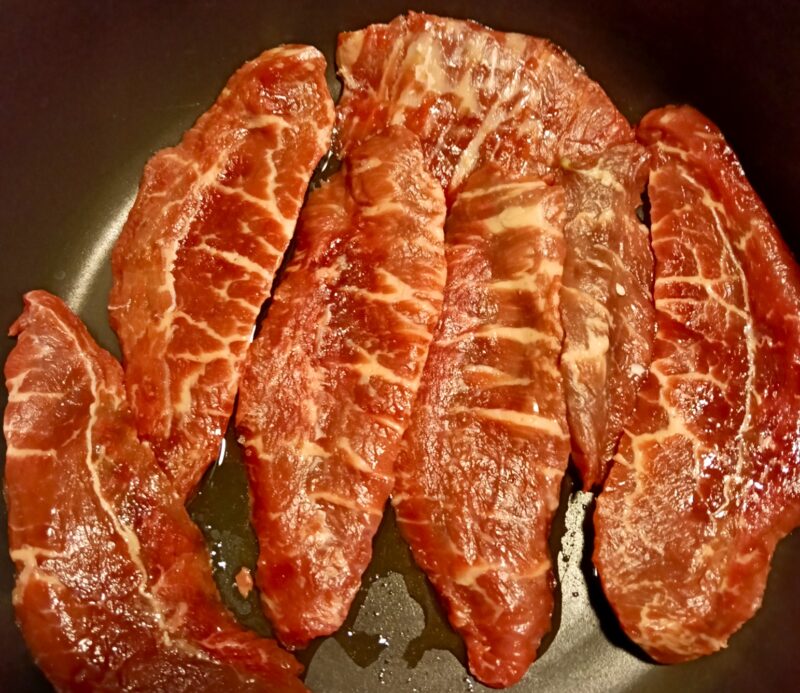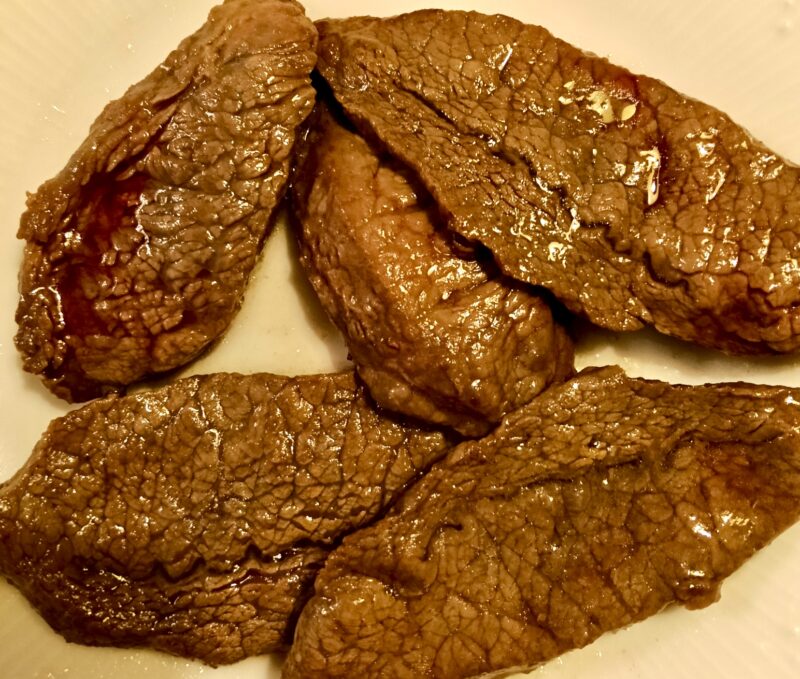 12枚くらいありましたので半分に分けて焼きました。1回目は柔らかさを感じて。2回目は少し火を入れすぎました。火とお肉との具合を見ながら自分好みを見つけるのは毎回の学びです。