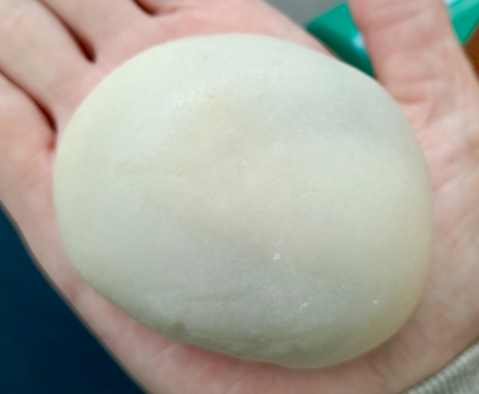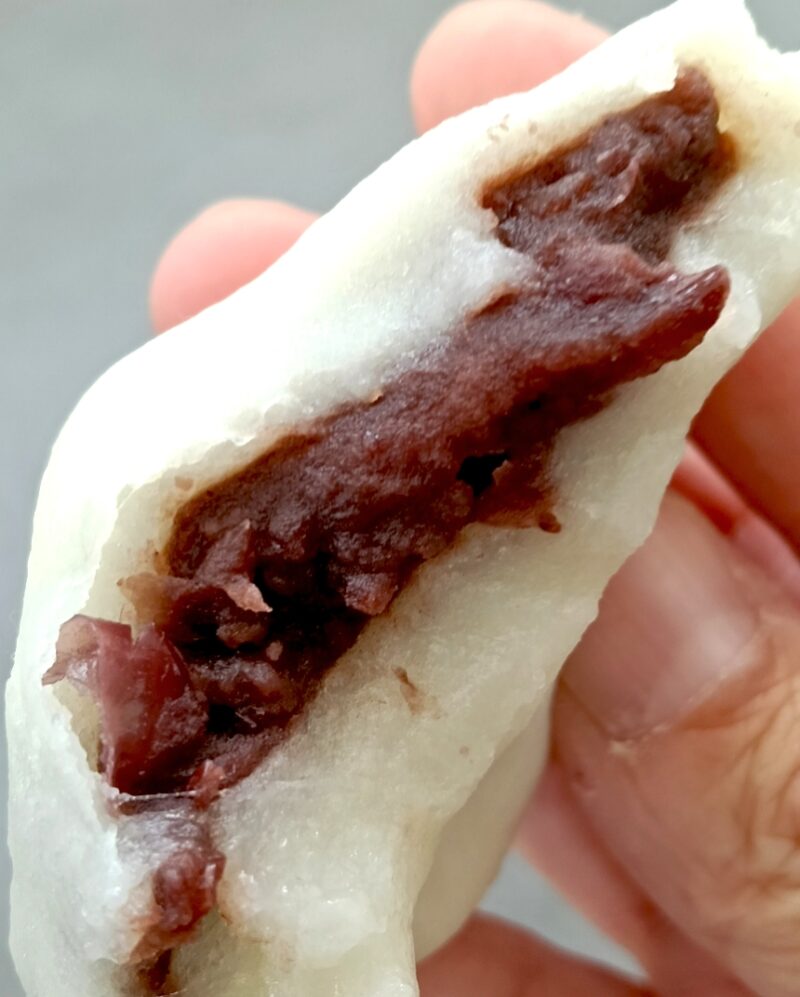 駅のベンチでパクっと。こぼれそうな白いお餅。手のひらサイズの大きさ。しばし転がして鑑賞です。これはアート。こんなに柔らかいお餅は初めてカモ。