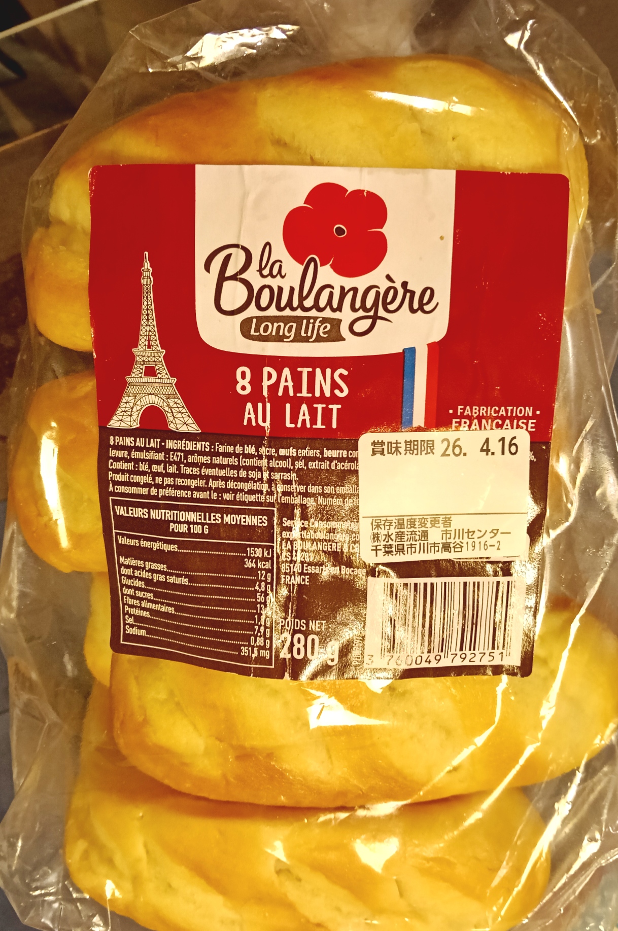おフランス製。牛乳とお砂糖、それに卵もバターオイルも入っている。