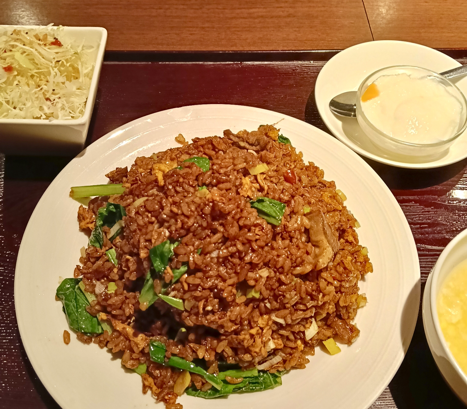 新橋の豫園さんで人気の牛肉黒チャーハンを。