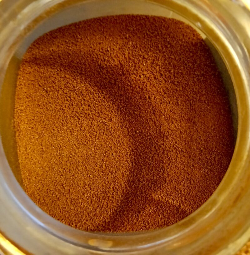 粒子が細かいですね。くしゃみしないようにね。お湯にさっと溶けてコーヒに。