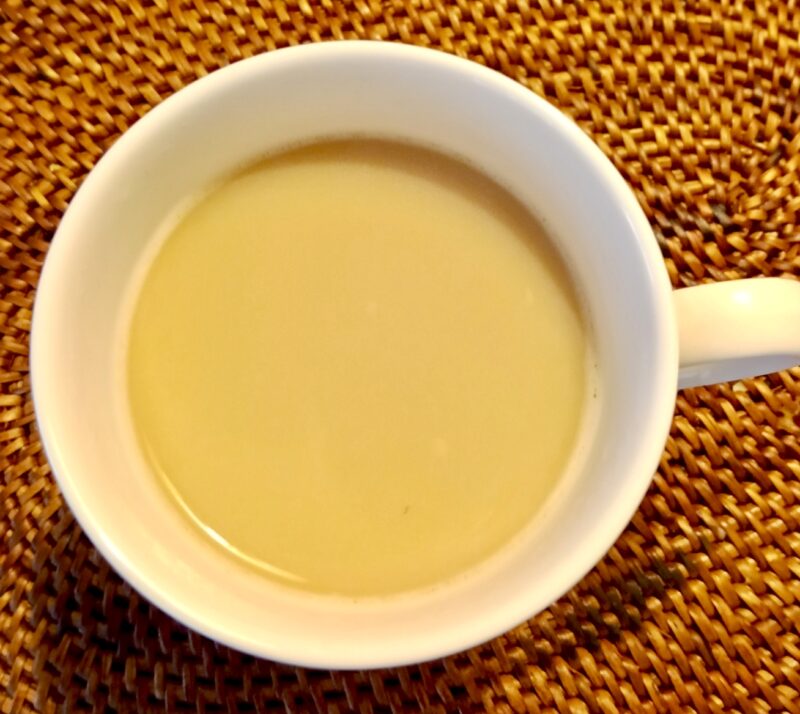 ミルクを入れていただきました。コクがあります。ブラジル農園の風景が。