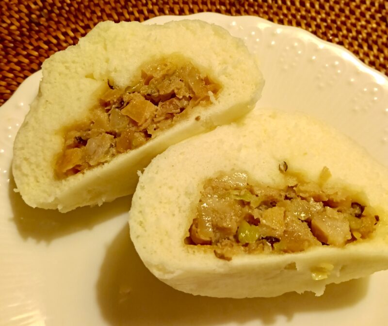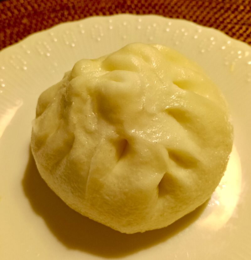 ふっくらで 上は見事にひねり。この中華まんは幸せの白い丸。みんなの丸です。
