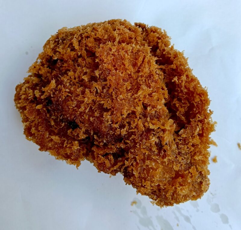 豚レバーは、こぶし大。100円ですよ。店前でガブリと。ピンクが残っていて、やわらか。