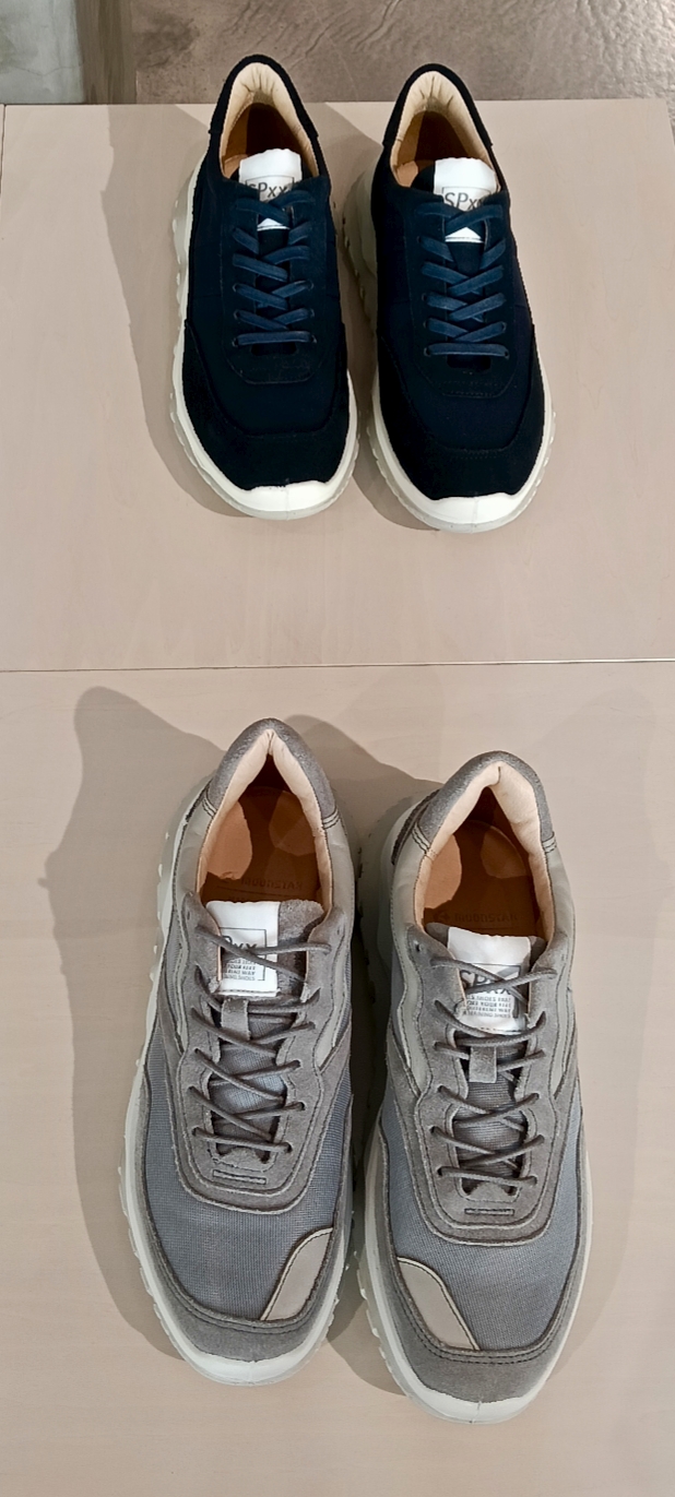 お店には新しく出たローファー顔のスニーカーがあって、ユニセックスでエライ売れているそうです。