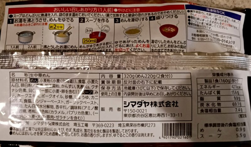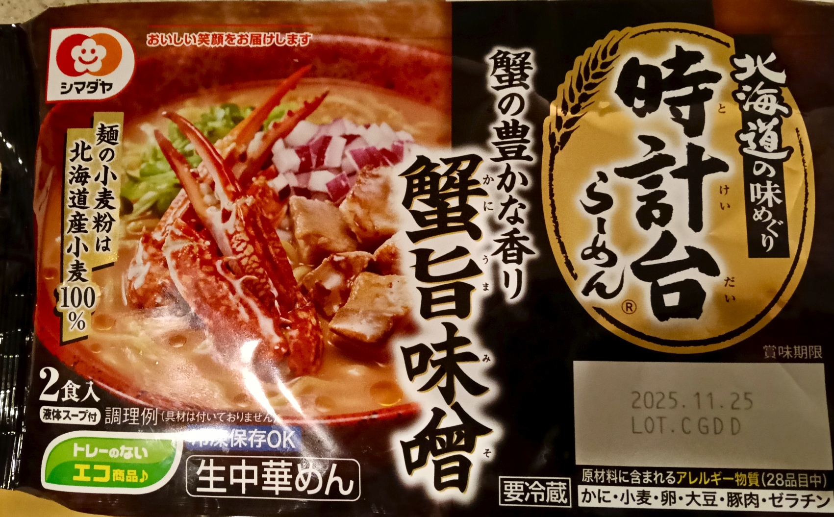 シマダヤさん。北海道の味めぐり 時計台らーめんとあります。2食入っています。