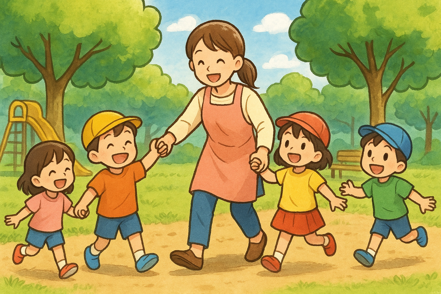 近所に保育園があります。いつもお子さんたちの元気な声が響いて。お父さんお母さんとお子さんたちが手に手を取って登園する姿は微笑ましく。