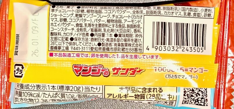 マンゴーと準チョコレートというお菓子。チョコレートに似ている。お口が南国だあ。