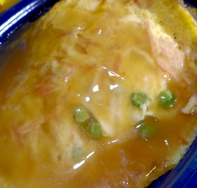 カニタマ、鶏肉、豚肉、もちろんグリーンピースが特製あんに纏われて。