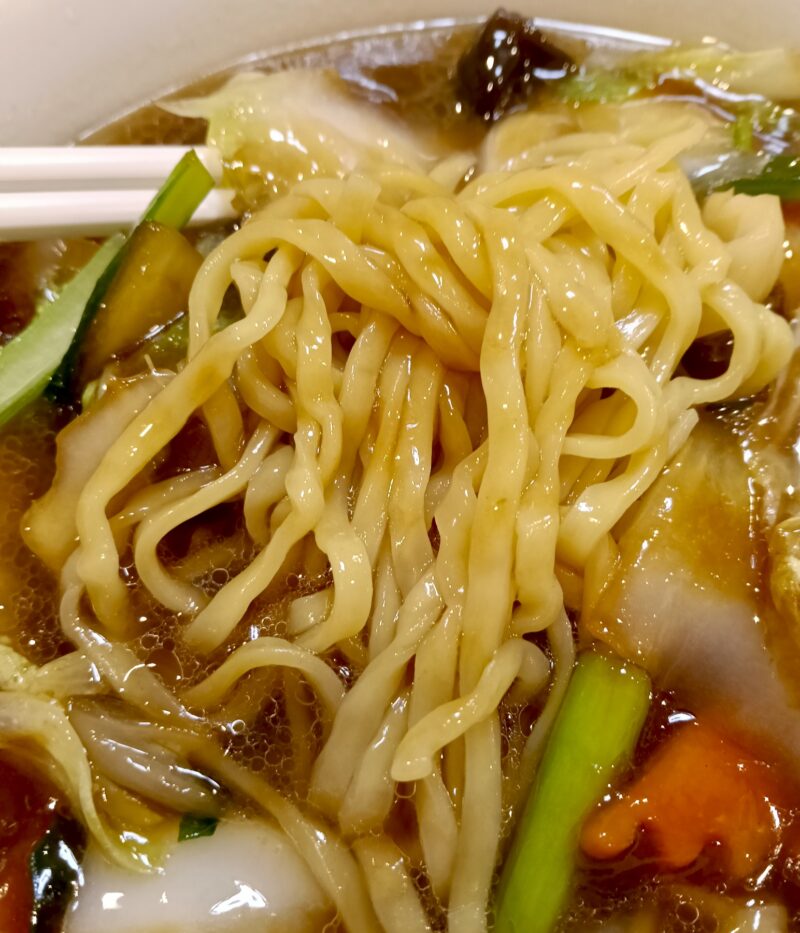 平打ちのちぢれ麺が負けずに個性を出してスープに絡みます。
