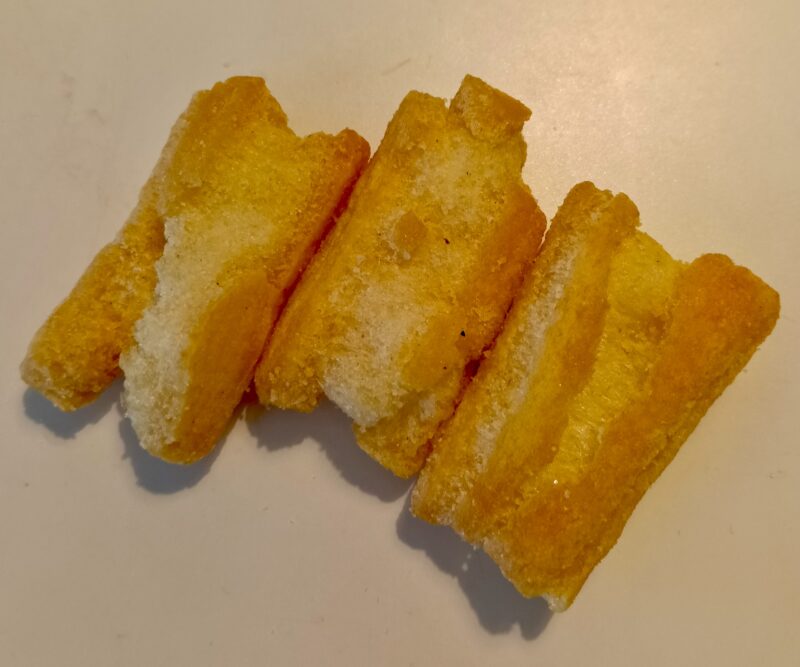 サクサクと軽い仕上がり。カタチとサイズがほぼ同じなのが食べやすいですね。