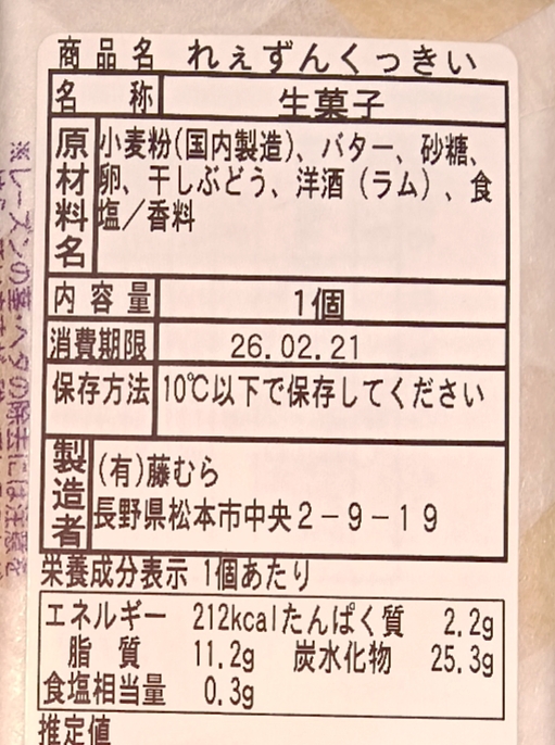 town東京都銀座food食べ物お菓子洋菓子 藤むらレーズンクッキー銀座長野県ショップ松本 長野 松本のれぇずんくっきい 出会えるのは月1回 Oplus_131072 2026.02.19 銀座の長野県ショップで見つけました。なんと毎週第2金曜日しか入ってこない幻のレーズンクッキーとのこと。 一人5個までと個数の制限がかかるほど。1つ270円でした。松本の藤むらさんがお作りとのこと。 Oplus_131072 Oplus_131072 バターが美味ですっ。クッキーのほろっとしたカンジ。柔らかレーズン。バターのクリーミー感。加えてほんのり塩が。 ひと口ひと口違う顔を見せてくれるクッキー。 これはトリコになります。この白き肌は罪な色。また来月来ます。 Post Views: 9