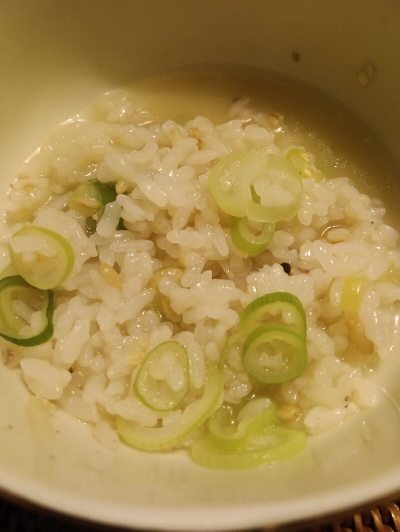 最後は、冷ご飯を雑炊で。温まりましたあ。