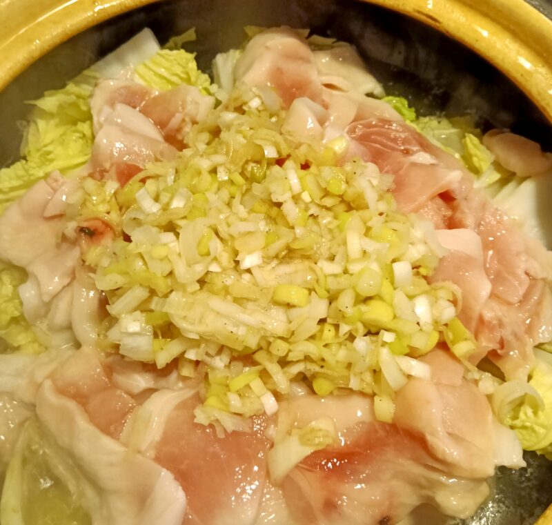その上に最初に和えた長ネギを入れて、中火で約10分です。