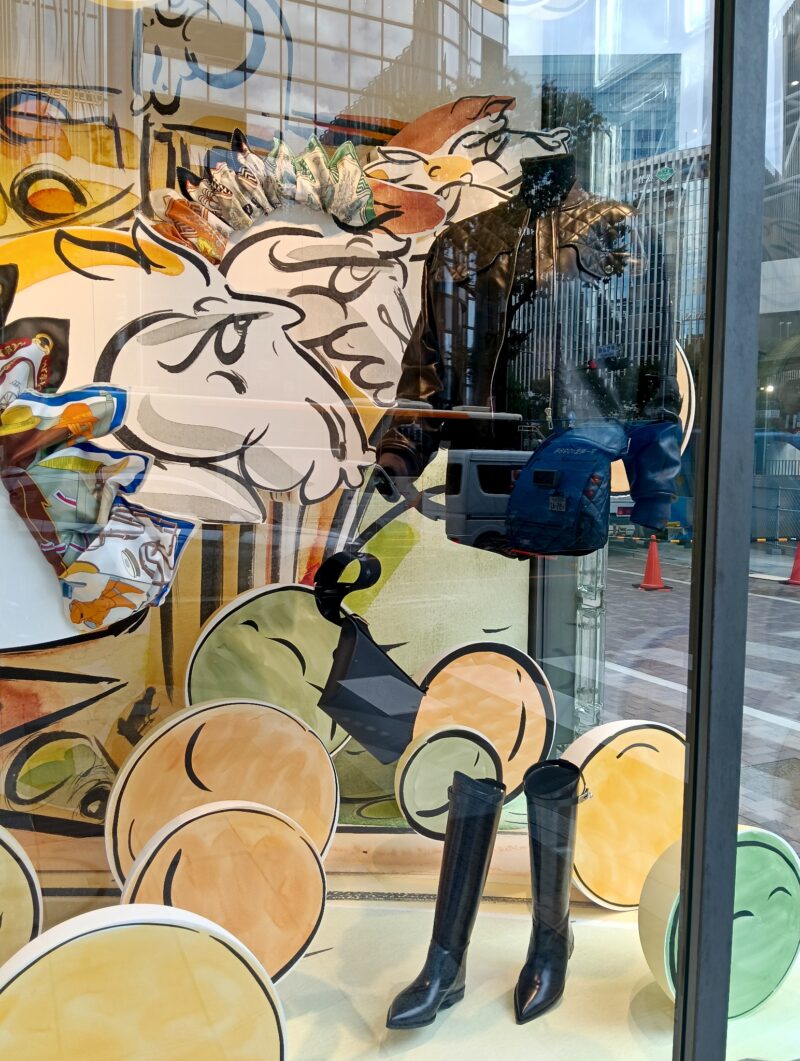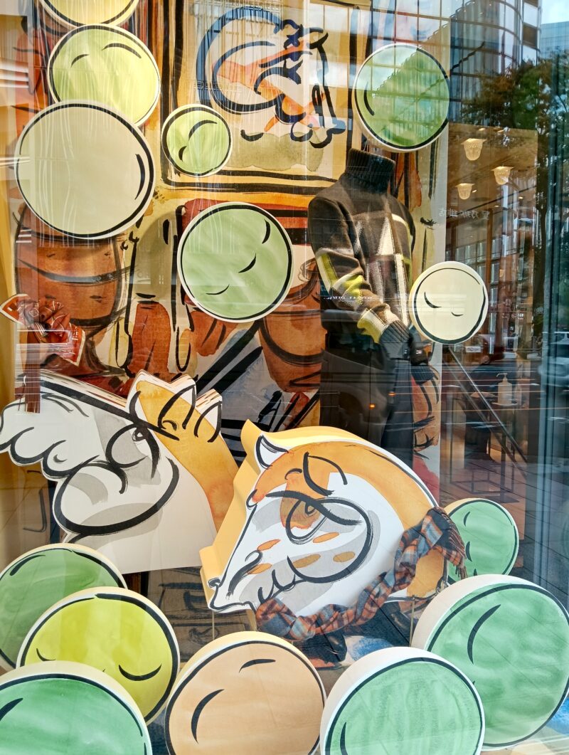 まわりはシャボン? 明るい夢で一杯。なかなか店は覗けないけれど、こちらのウインドウ見ているとセンスが磨かれます。