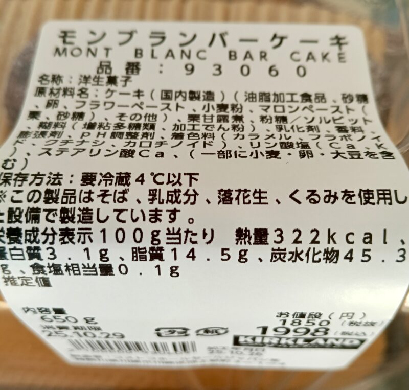 ずらり並んだ8つのマロンが綺麗で思わずカートに。モンブランバーケーキです。