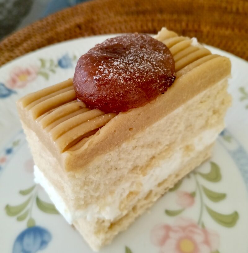 いただきました。マロン、マロンクリーム、スポンジ、生クリーム、スポンジ。嬉しい5重奏。