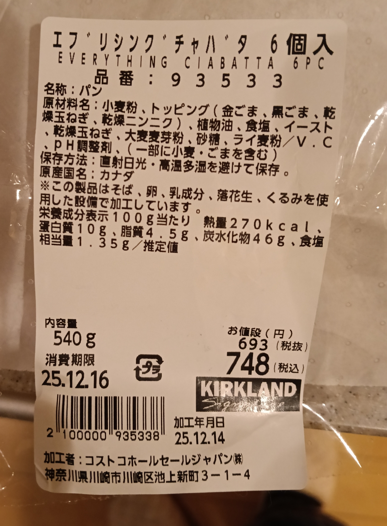 エブリシングチャバタ6個入りを買いました。6個入り、748円です。1個はなかなか大きい