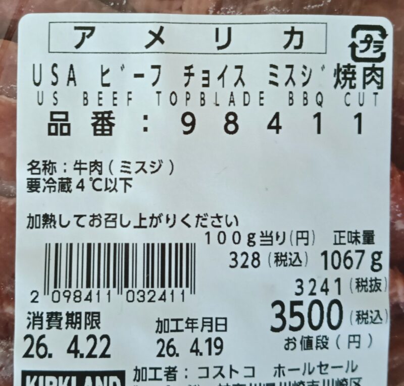 ミスジは、牛の肩甲骨から手首までの内側にあるお肉。肩甲骨の内側です。柔らかいのが特徴とのこと。