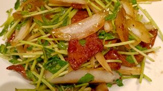 town 新橋豫園 豚レバー豆苗炒め 900円 厨房からワクワク